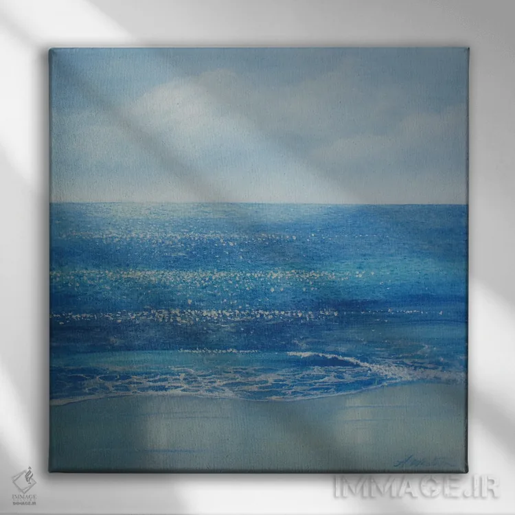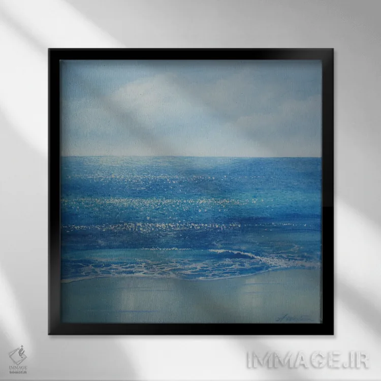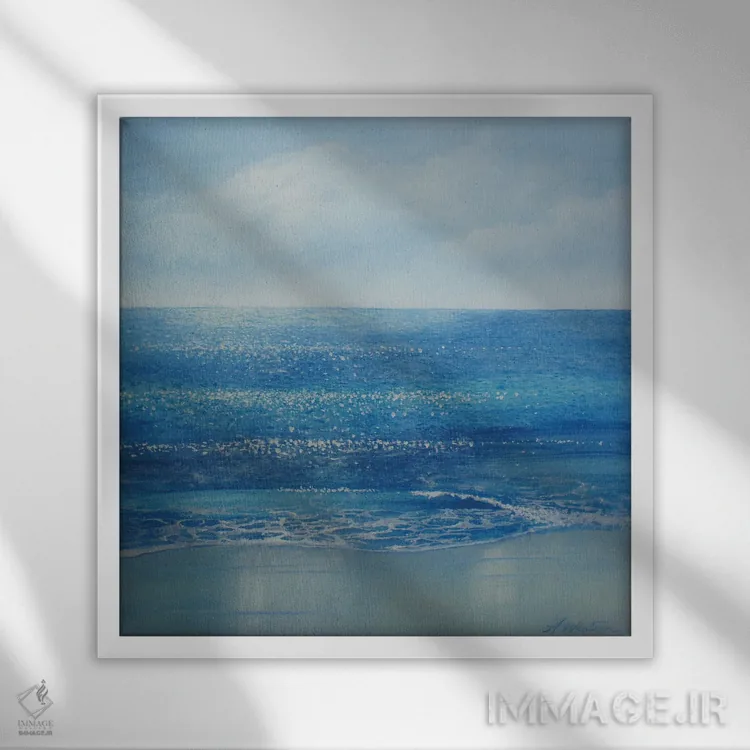 براساس پالت سرد اثر، قاب سفید مات (فریم باریک) پیشنهاد اول است و نقرهای برسخورده (متالیک) مکمل. برای سفارشهای پروژهای با ابعاد و قابهای اختصاصی با ایماژ در تماس باشید.