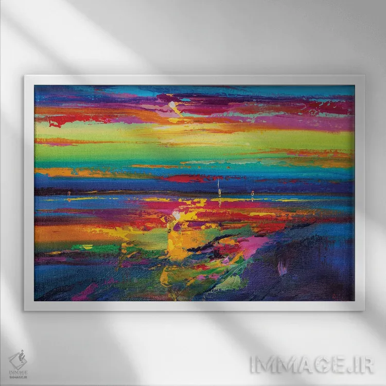 براساس پالت ترکیبی اثر، قاب تیک گرم (چوبی) پیشنهاد اول است و مشکی مات (فریم متوسط) مکمل. برای سفارشهای پروژهای با ابعاد و قابهای اختصاصی با ایماژ در تماس باشید.