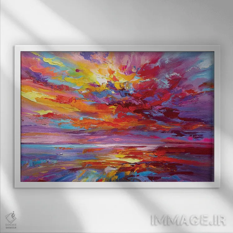 براساس پالت ترکیبی اثر، قاب تیک گرم (چوبی) پیشنهاد اول است و مشکی مات (فریم متوسط) مکمل. برای سفارشهای پروژهای با ابعاد و قابهای اختصاصی با ایماژ در تماس باشید.
