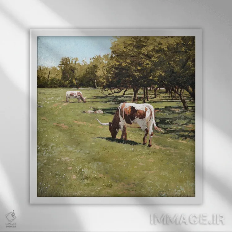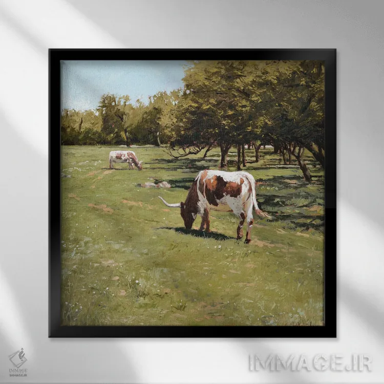 براساس پالت ترکیبی اثر، قاب تیک گرم (چوبی) پیشنهاد اول است و مشکی مات (فریم متوسط) مکمل. برای سفارشهای پروژهای با ابعاد و قابهای اختصاصی با ایماژ در تماس باشید.