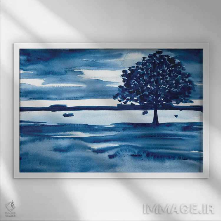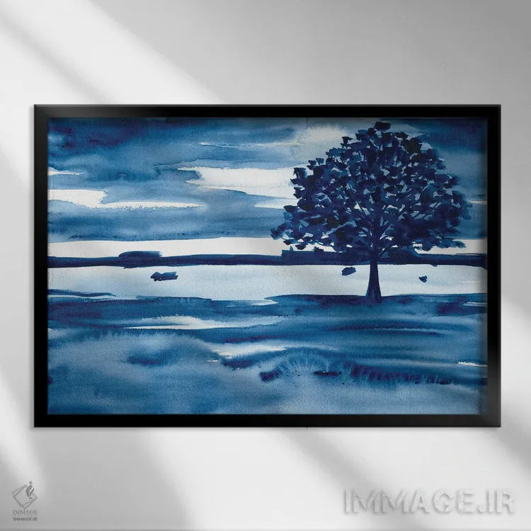 «منظرهٔ آبرنگ با درخت آبی تیره» اثرِ «آنا اوز» میتواند جزئیات نزدیک را چشمنواز نشان بدهد؛ برای راهروهای مینیمال پیشنهاد میشود. با قاب روشن یا چوبی، حس طبیعیتری پیدا میکند.