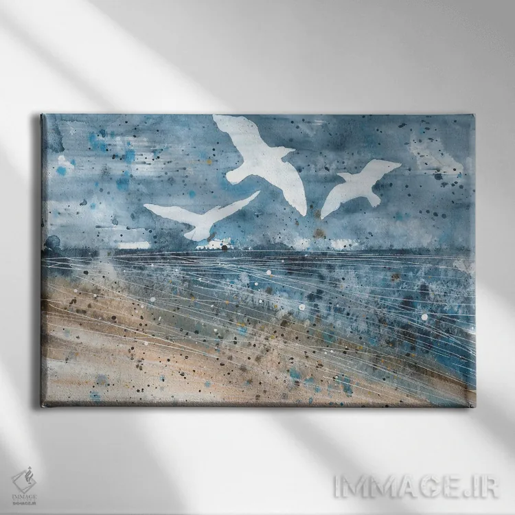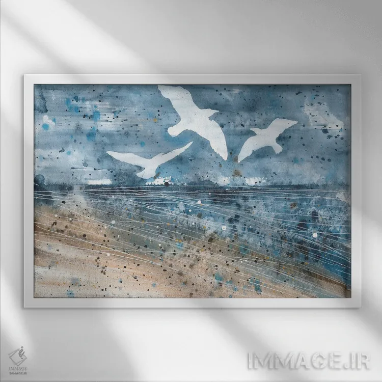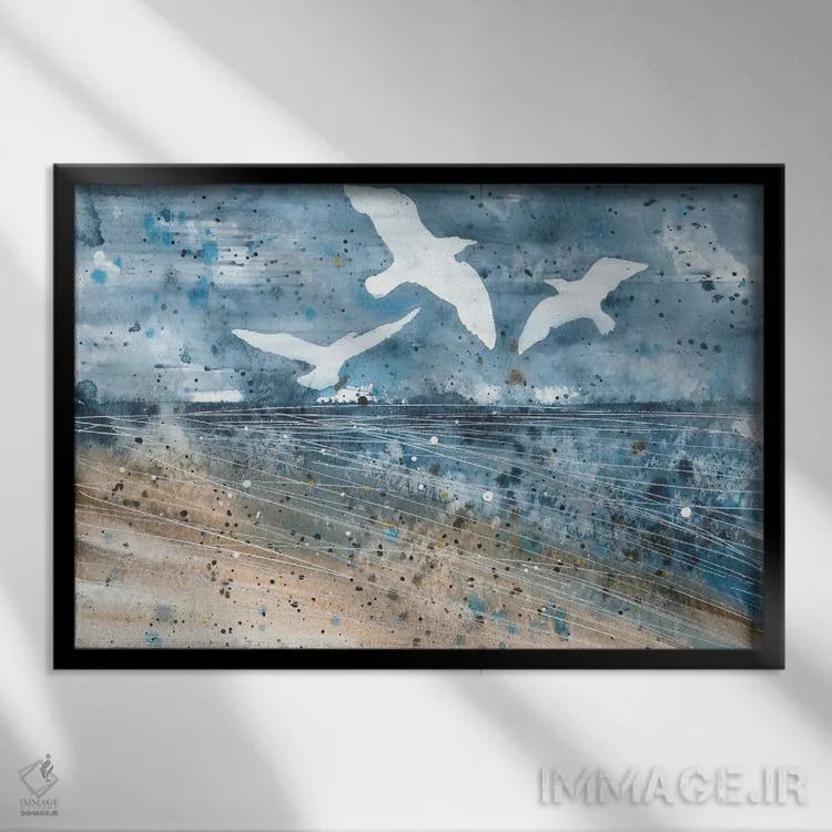 تابلو مرغان دریایی در ساحل اقیانوس با آبرنگ اثر آنا اوز