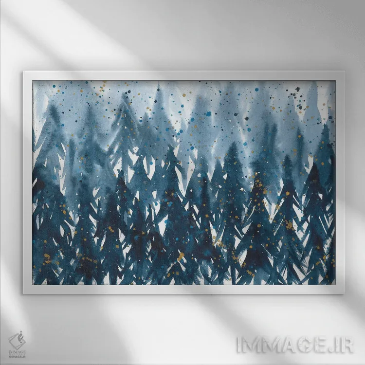 برای دیواری که دوست دارید «حرف داشته باشد»، «انتزاعی جنگل آبی» اثرِ «آنا اوز» جلوهٔ رنگها را طبیعیتر و متعادلتر نشان میدهد؛ برای کافهها و فضاهای عمومی کوچک پیشنهاد میشود. جزئیاتش نزدیکِ کار هم ارزش نگاه دارد.