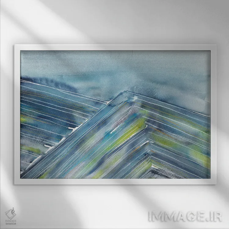 براساس پالت سرد اثر، قاب سفید مات (فریم باریک) پیشنهاد اول است و نقرهای برسخورده (متالیک) مکمل. برای سفارشهای پروژهای با ابعاد و قابهای اختصاصی با ایماژ در تماس باشید.