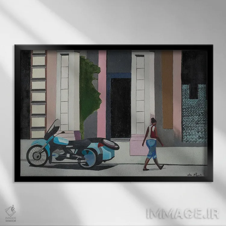 «موتورسیکلت هاوانا، کوبا» اثرِ «آن دو پلنتی» از آن کارهاییست که در دکورهای جدیتر (نشیمن رسمی یا دفتر کار) عالی مینشیند.
