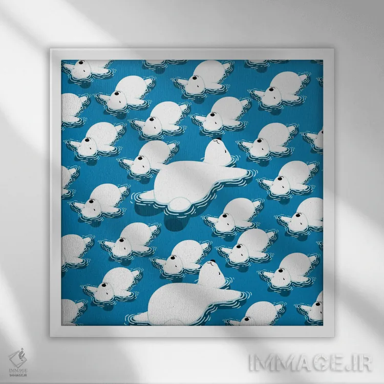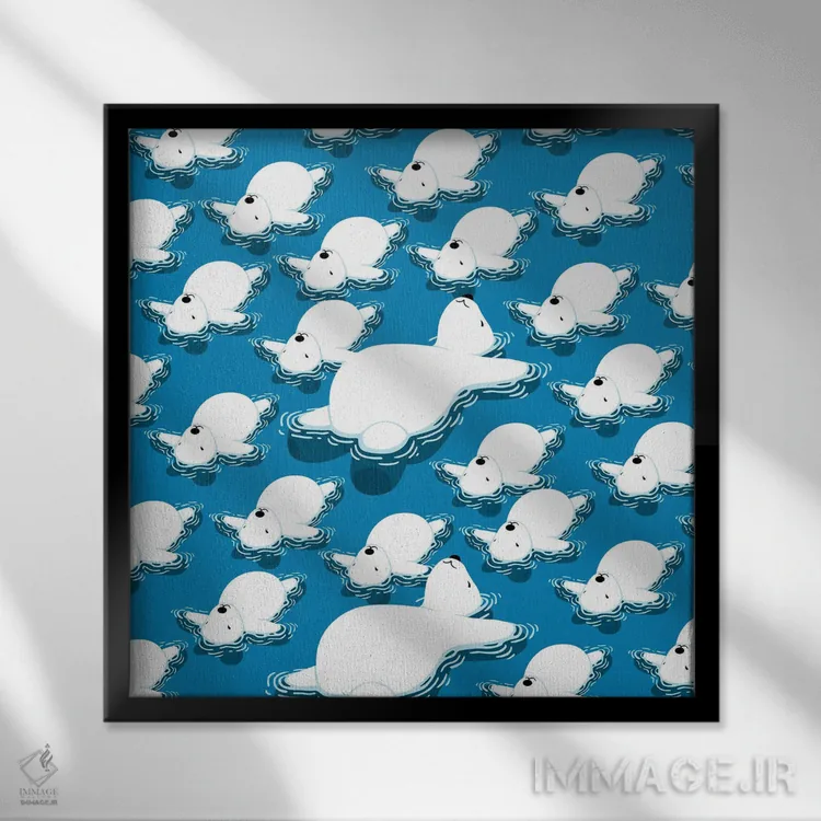 تابلو خانواده خرس‌های قطبی شناور اثر آلبرتو پرز - نمای قاب‌دار سفید