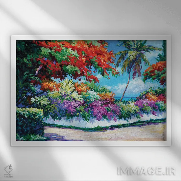 براساس پالت ترکیبی اثر، قاب تیک گرم (چوبی) پیشنهاد اول است و مشکی مات (فریم متوسط) مکمل. برای سفارشهای پروژهای با ابعاد و قابهای اختصاصی با ایماژ در تماس باشید.