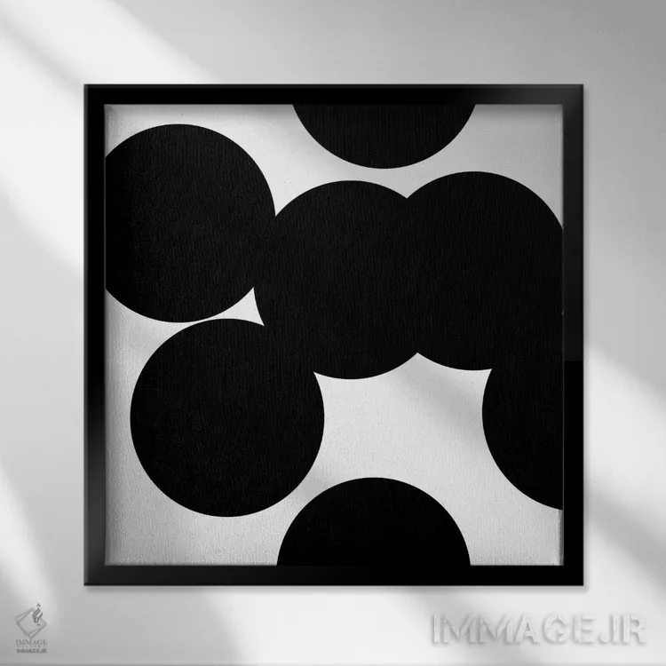 «دایرههای سیاه» اثرِ «آرت میرانو» بهخاطر فرمهای آزادش، در فضاهای خنثی بهتر دیده میشود و عمق بصری ایجاد میکند.