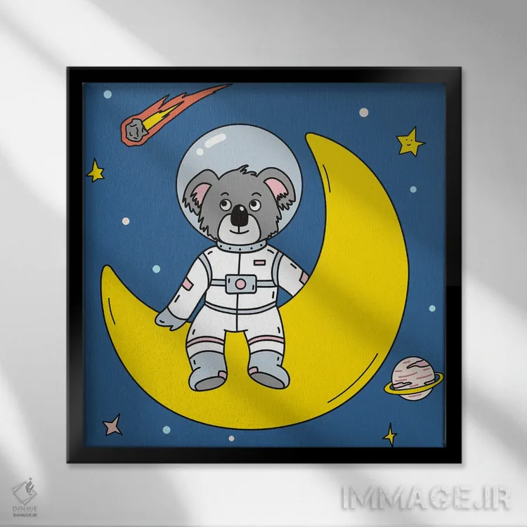 برای دیوارهای ساده، «خرس کوآلا در فضا» اثرِ «آرت میرانو» به فضا، گرمیِ ملایم اضافه میکند؛ برای اتاق کودک (بدون لحن کودکانه) انتخابی خوشسلیقه است. هم فضا را گرم میکند، هم شلوغش نمیکند.