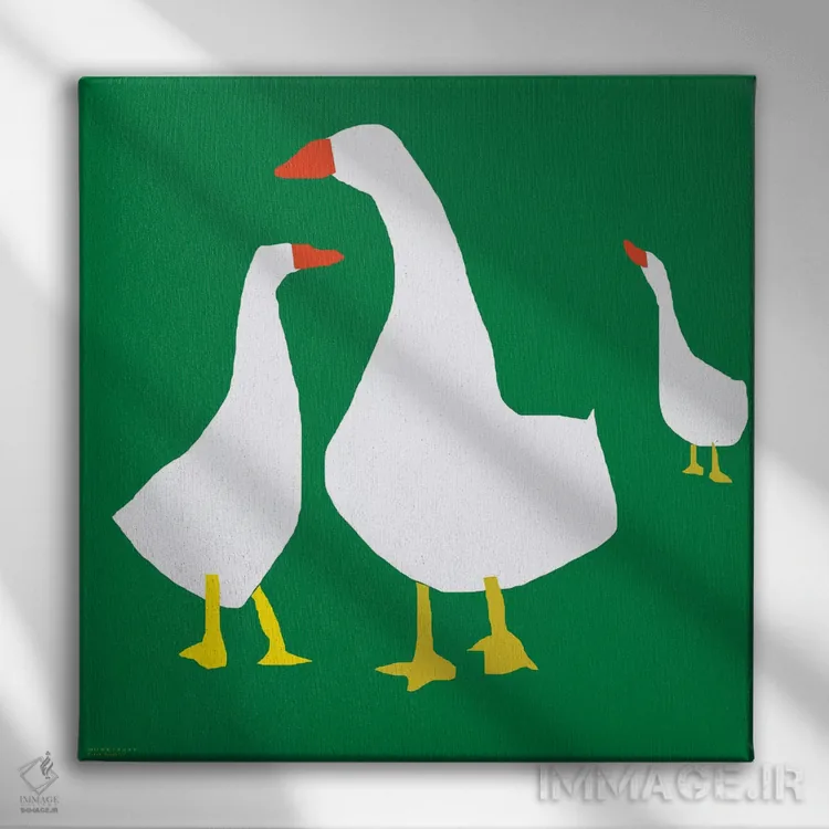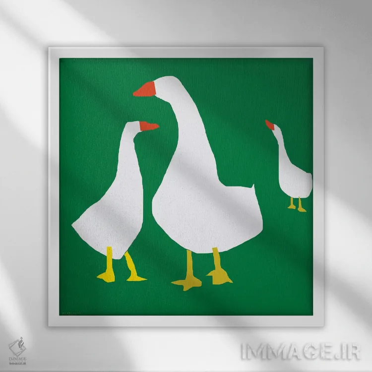 برای دکورهای صمیمی، «غازها روی زمینه سبز» اثرِ «آرت میرانو» بدون کودکانه شدن، بازیگوش و خوشپرداخت میماند؛ برای دکورهایی با رنگهای خنثی انتخابی خوشسلیقه است. با قاب چوبی یا مشکی، حس مرتبتری پیدا میکند.