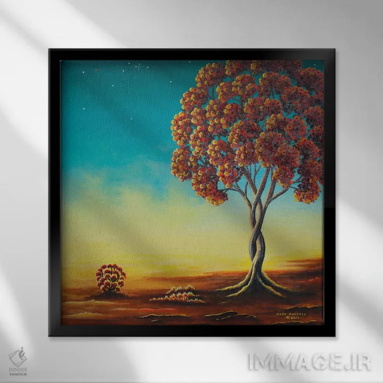 براساس پالت ترکیبی اثر، قاب تیک گرم (چوبی) پیشنهاد اول است و مشکی مات (فریم متوسط) مکمل. برای سفارشهای پروژهای با ابعاد و قابهای اختصاصی با ایماژ در تماس باشید.