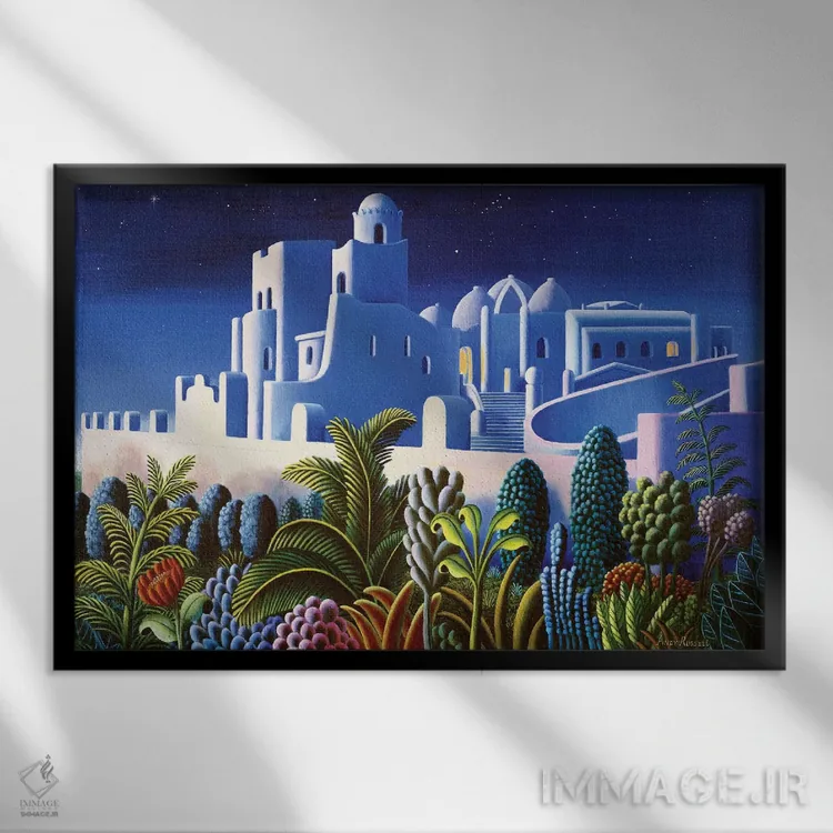 براساس پالت ترکیبی اثر، قاب تیک گرم (چوبی) پیشنهاد اول است و مشکی مات (فریم متوسط) مکمل. برای سفارشهای پروژهای با ابعاد و قابهای اختصاصی با ایماژ در تماس باشید.