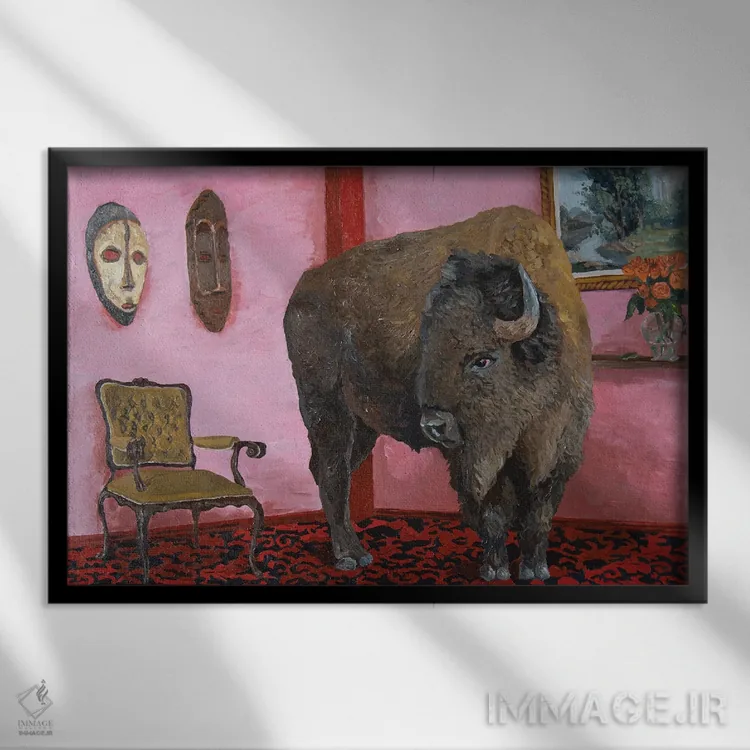 تابلو گاومیش آمریکایی روی پسزمینه قرمز اثر آرتور ریو