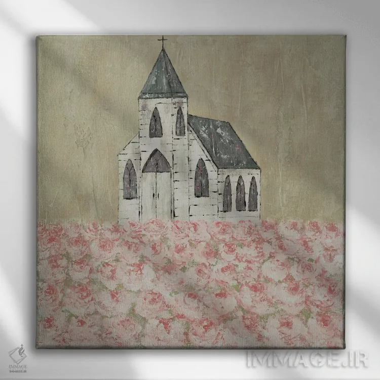 تابلو دکوراتیو کلیسا و مزرعه گل صدتومانی اثر اشلی بردلی