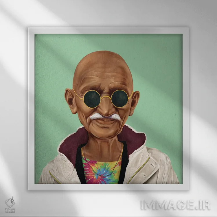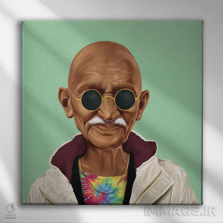«مهاتما گاندی (رهبر هند)» اثرِ «امت شیمونی» با حالوهوای دکور معاصر و موضوعِ این اثر، برای نشیمنهای امروزی و چیدمانهای ساده انتخابی دقیق است.