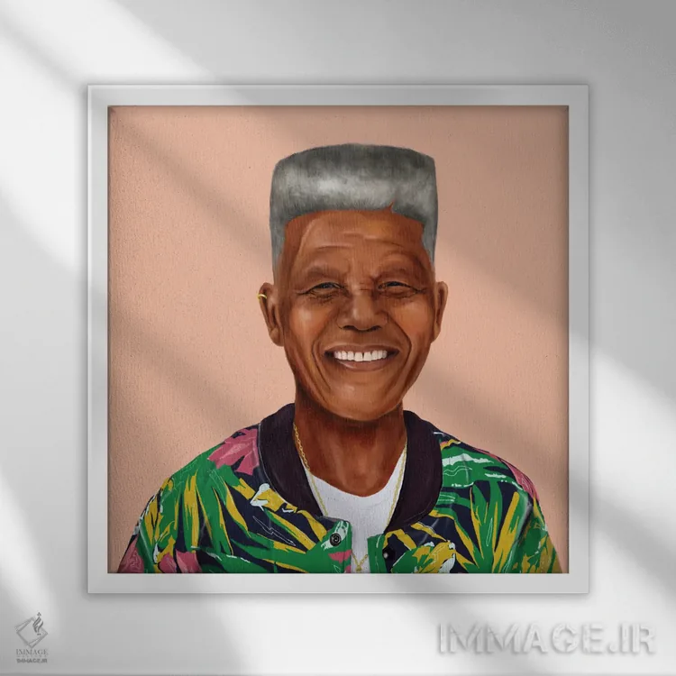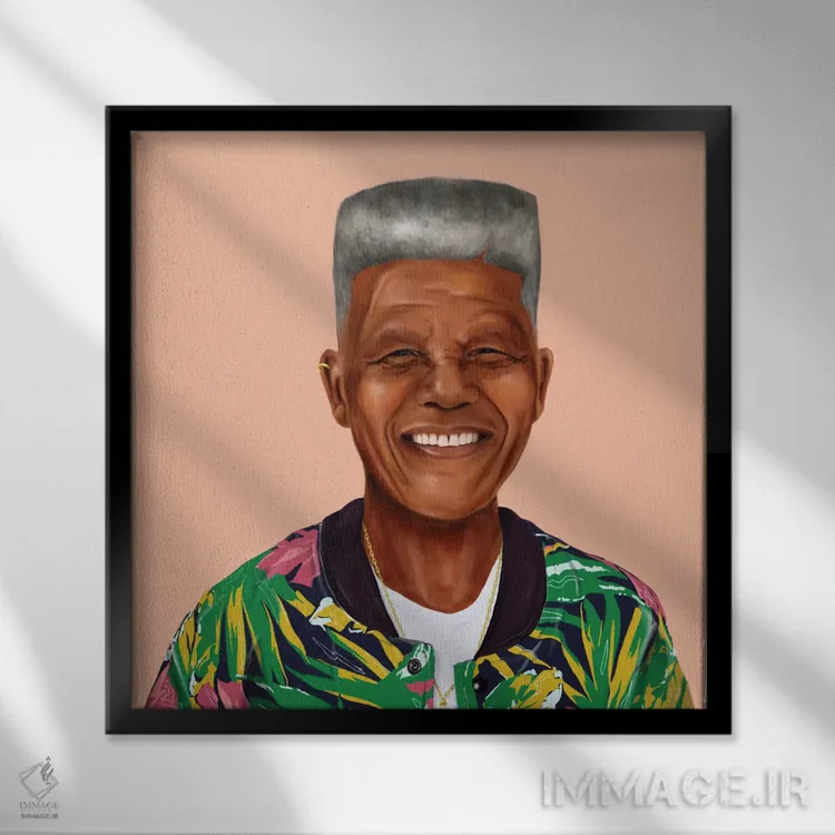 تابلو نلسون ماندلا (رهبر آفریقای جنوبی) اثر امت شیمونی - نمای قاب‌دار سفید