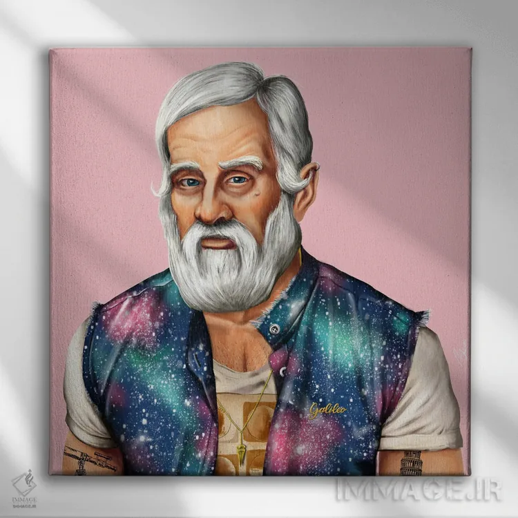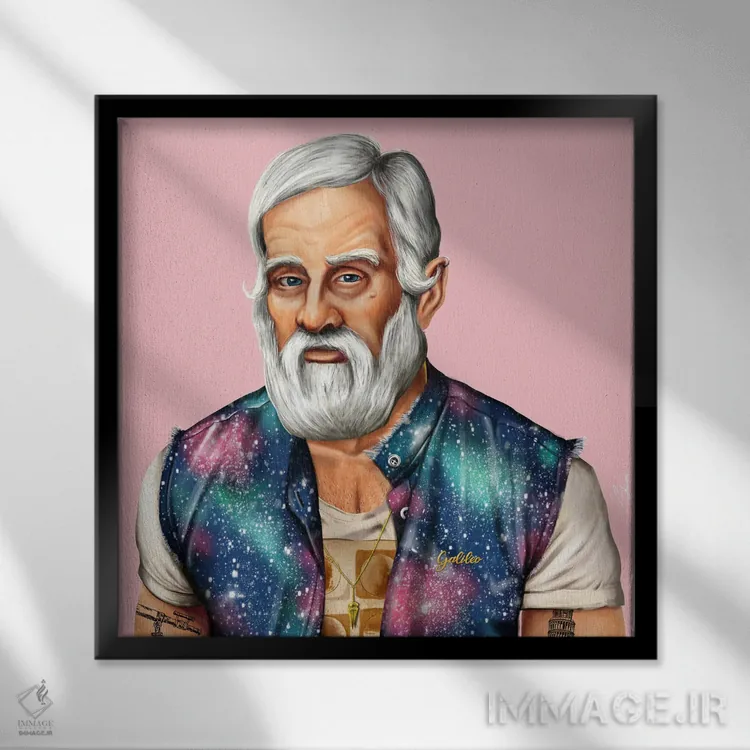 تابلو گالیله (دانشمند) اثر امت شیمونی - نمای قاب‌دار سفید