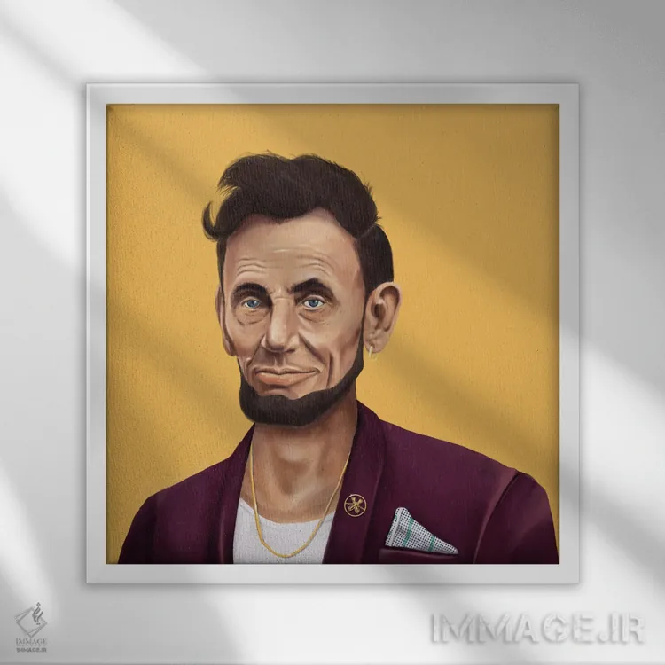 تابلو آبراهام لینکلن (رئیس‌جمهور آمریکا) اثر امت شیمونی - نمای قاب‌دار سفید