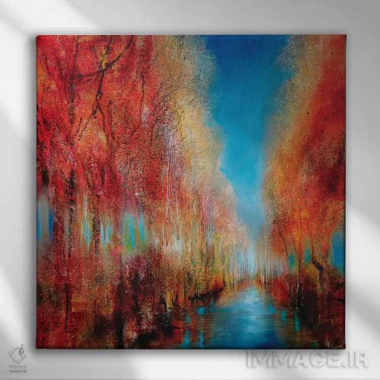 براساس پالت ترکیبی اثر، قاب تیک گرم (چوبی) پیشنهاد اول است و مشکی مات (فریم متوسط) مکمل. برای سفارشهای پروژهای با ابعاد و قابهای اختصاصی با ایماژ در تماس باشید.