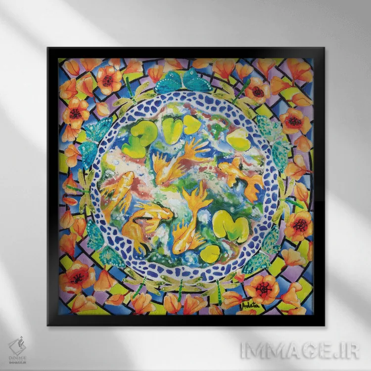 براساس پالت ترکیبی اثر، قاب تیک گرم (چوبی) پیشنهاد اول است و مشکی مات (فریم متوسط) مکمل. برای سفارشهای پروژهای با ابعاد و قابهای اختصاصی با ایماژ در تماس باشید.