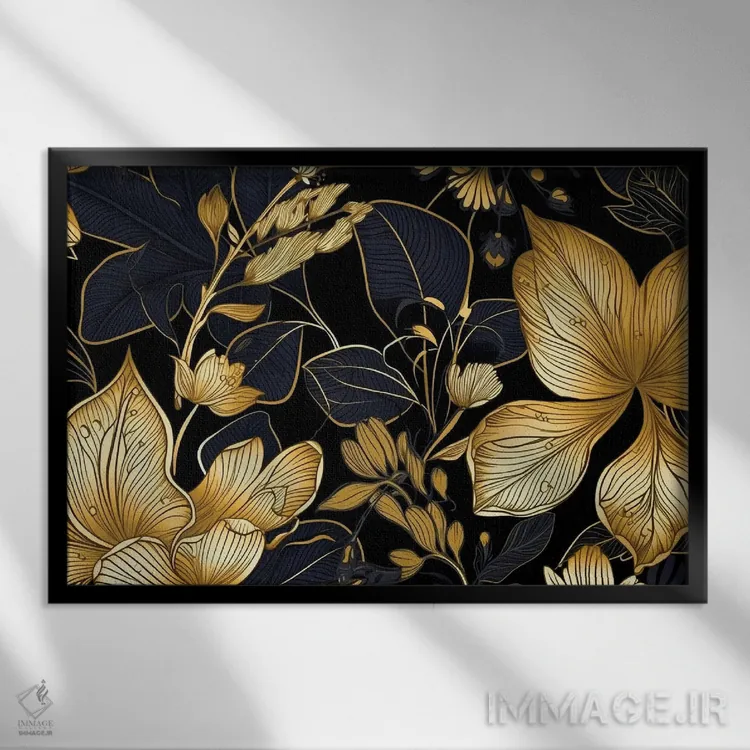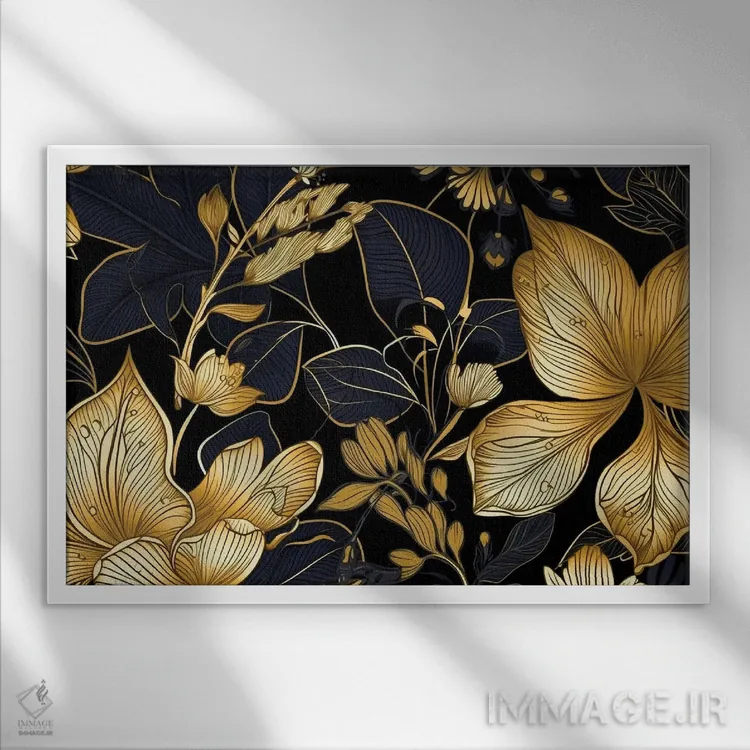 تابلو دکوراتیو برگ آرایی مشکی و طلایی اثر آرسی بسی