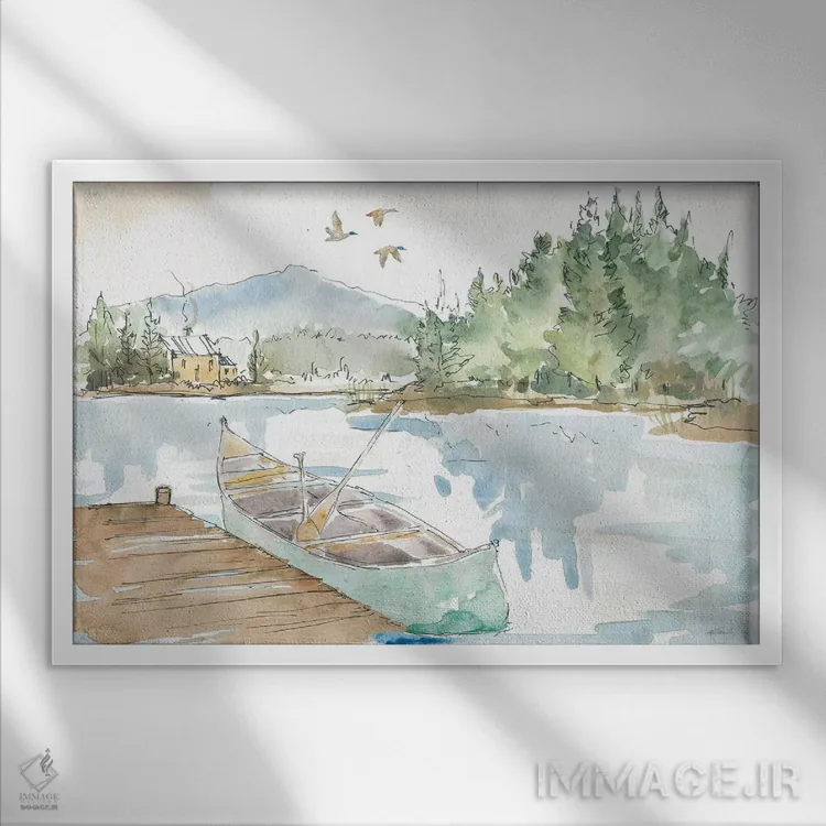 تابلو خانهٔ دریاچه I اثر آن تاولتی - نمای قاب‌دار سفید