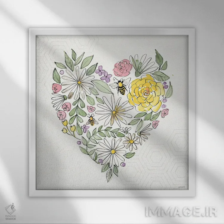 تابلو شکوفه‌های زنبور عسل XI (بدون متن) اثر آن تاولتی - نمای قاب‌دار سفید