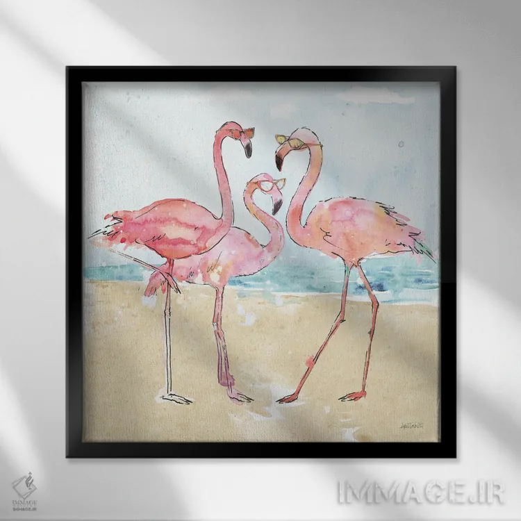 تابلو تب فلامینگو (ساحل) اثر آن تاولتی - نمای قاب‌دار مشکی