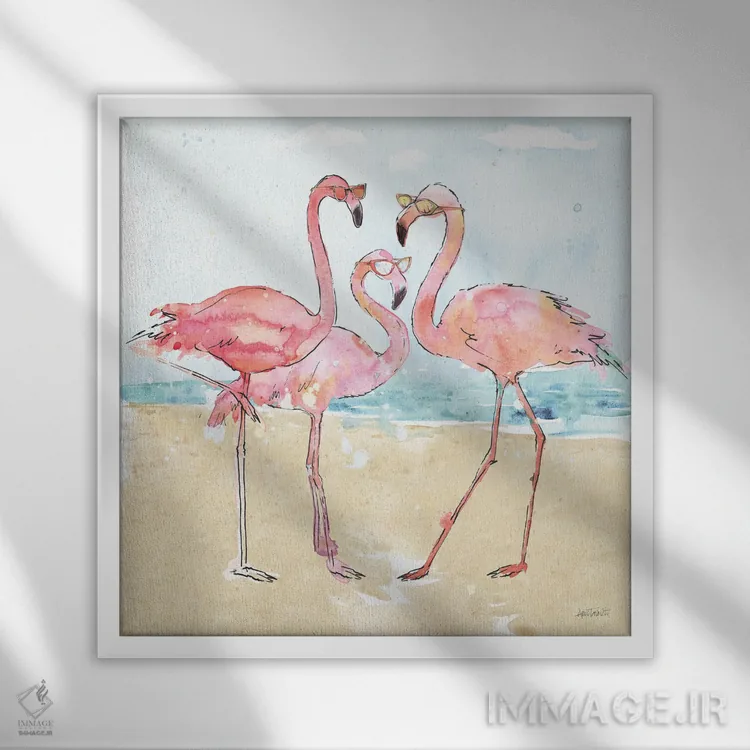 تابلو تب فلامینگو (ساحل) اثر آن تاولتی - نمای قاب‌دار سفید