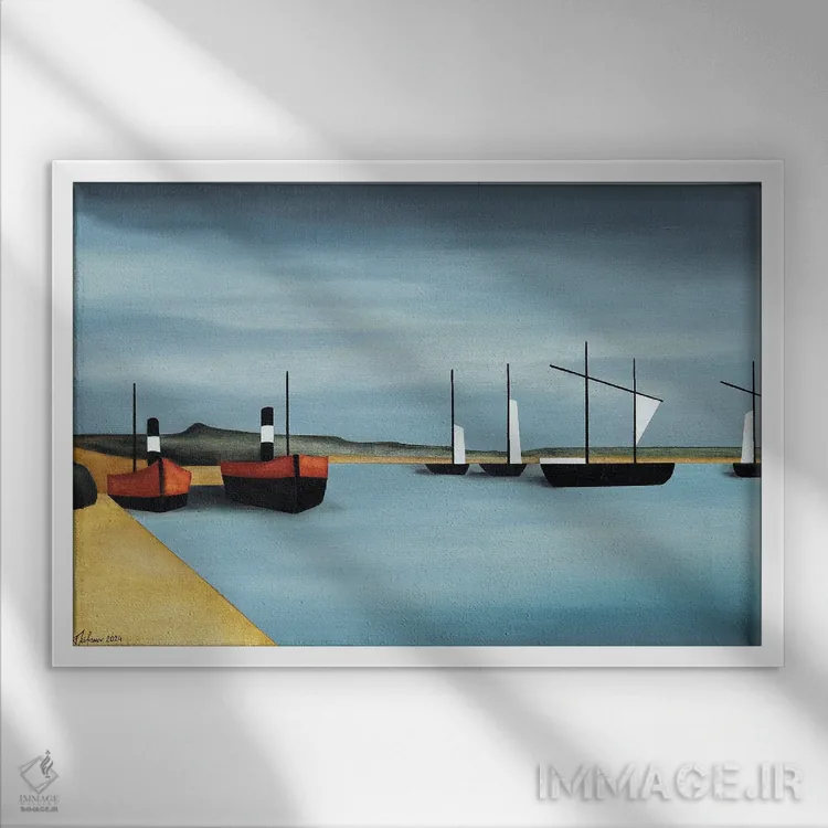 تابلو بندر آرام اثر الکساندر تریفونوف - نمای قاب‌دار سفید