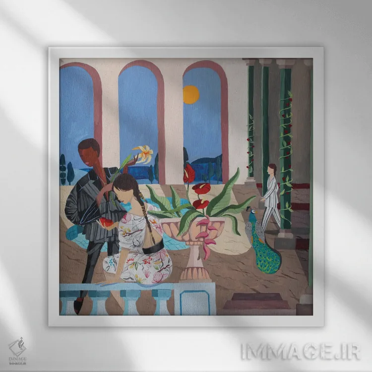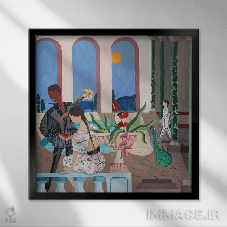 براساس پالت ترکیبی اثر، قاب تیک گرم (چوبی) پیشنهاد اول است و مشکی مات (فریم متوسط) مکمل. برای سفارشهای پروژهای با ابعاد و قابهای اختصاصی با ایماژ در تماس باشید.