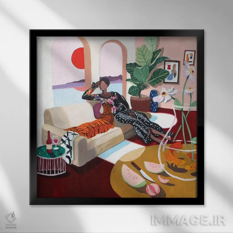 براساس پالت گرم اثر، قاب تیک گرم (چوبی) پیشنهاد اول است و مشکی مات (فریم متوسط) مکمل. برای سفارشهای پروژهای با ابعاد و قابهای اختصاصی با ایماژ در تماس باشید.