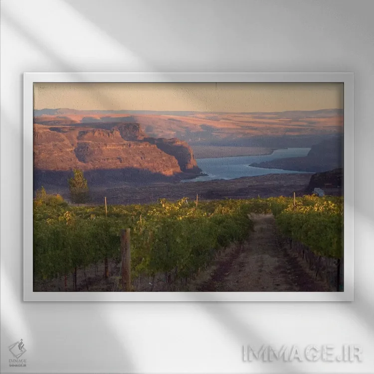 «رودخانه کلمبیا با تاکستان Cave B در پیشزمینه، شهرستان گرانت، منطقه Columbia Valley AVA، واشینگتن، آمریکا» اثرِ «جنیس میگلاوس» از آن تابلوهاییست که هم لطیف است، هم دکورپذیر؛ مخصوصاًً با موضوعِ این اثر.