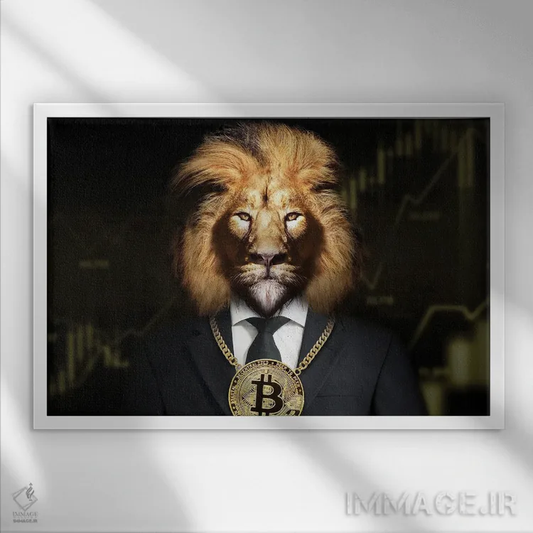تابلو شیر با بیتکوین طلایی دور گردن اثر آدریان ویریو