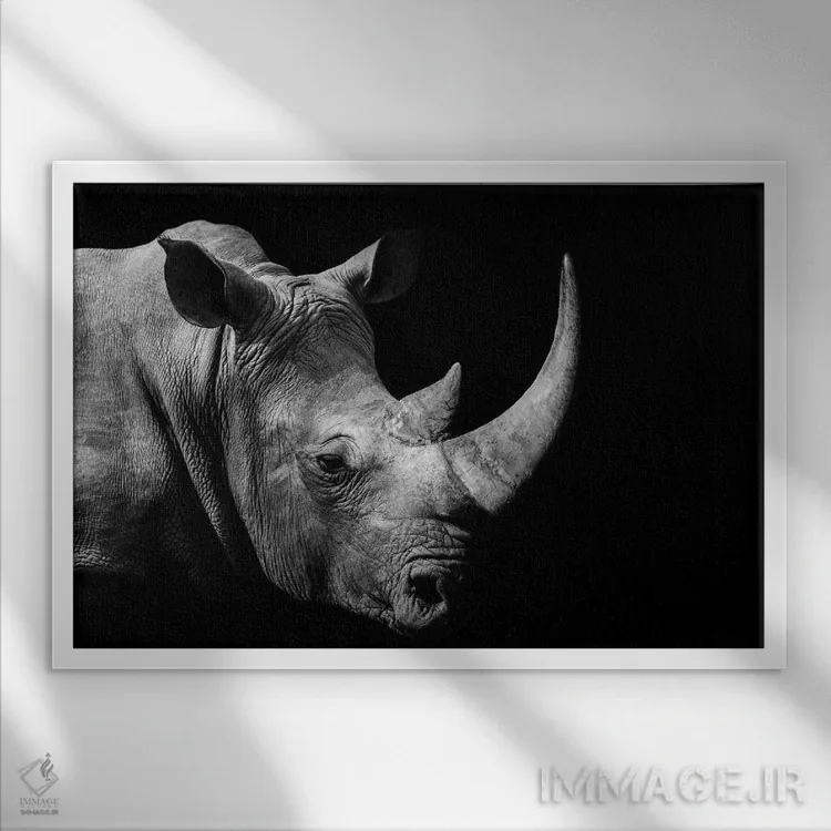 تابلو کرگدن آفریقایی (سیاه و سفید) اثر آدریان ویریو