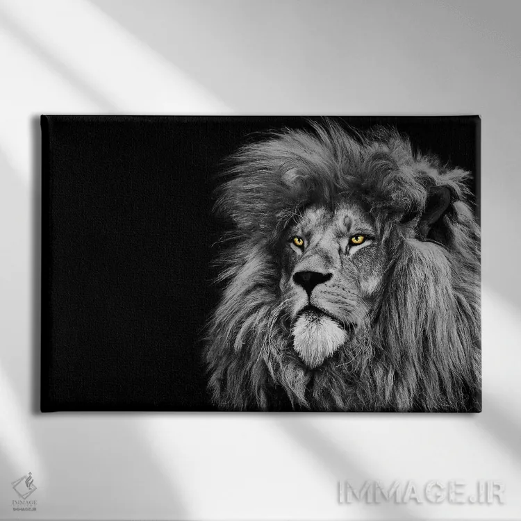 تابلو شیر در حال نگاه به بالا، سیاه‌وسفید اثر آدریان ویریو - نمای روبه‌رو روی دیوار