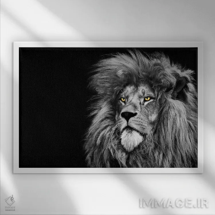 تابلو شیر در حال نگاه به بالا، سیاه‌وسفید اثر آدریان ویریو - نمای قاب‌دار مشکی