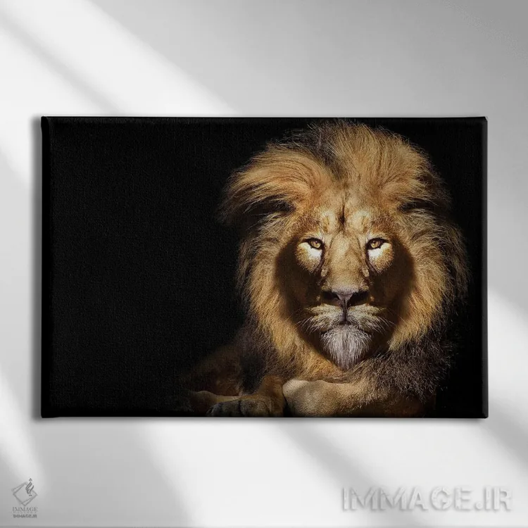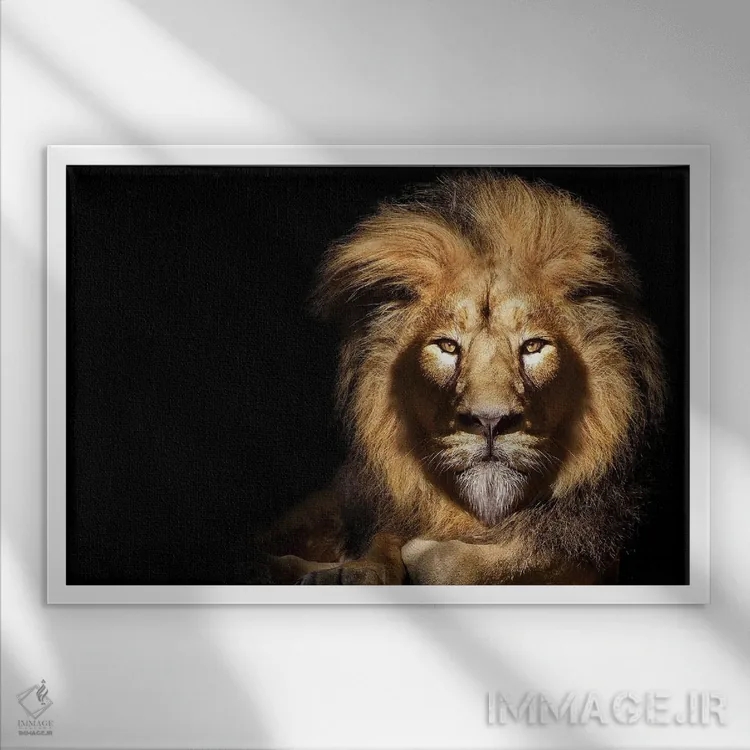 تابلو پرتره شیر نر آفریقایی روی پسزمینه سیاه اثر آدریان ویریو