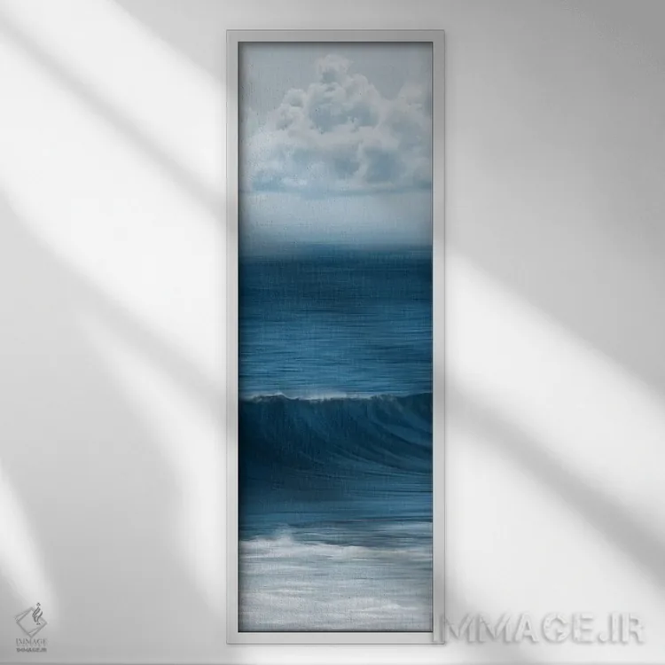 براساس پالت سرد اثر، قاب سفید مات (فریم باریک) پیشنهاد اول است و نقرهای برسخورده (متالیک) مکمل. برای سفارشهای پروژهای با ابعاد و قابهای اختصاصی با ایماژ در تماس باشید.