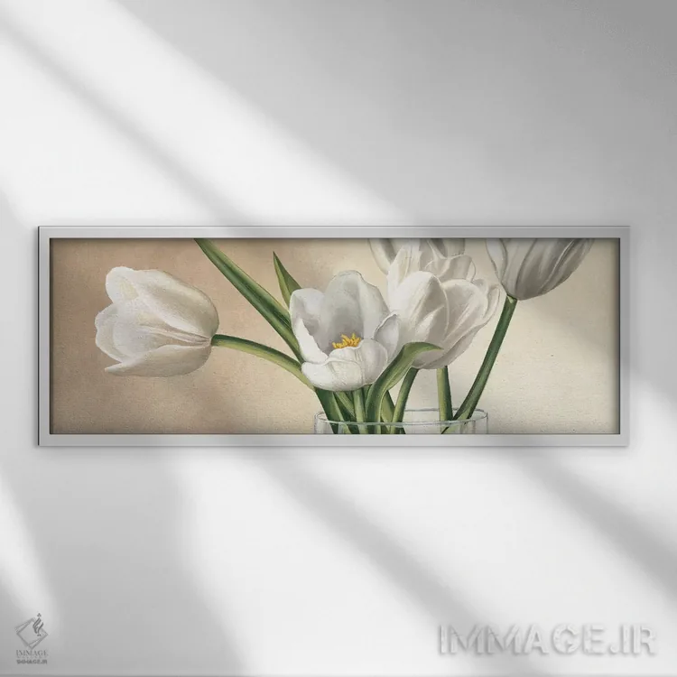 تابلو دکوراتیو گلدان با لاله های سفید اثر اوا باربرینی