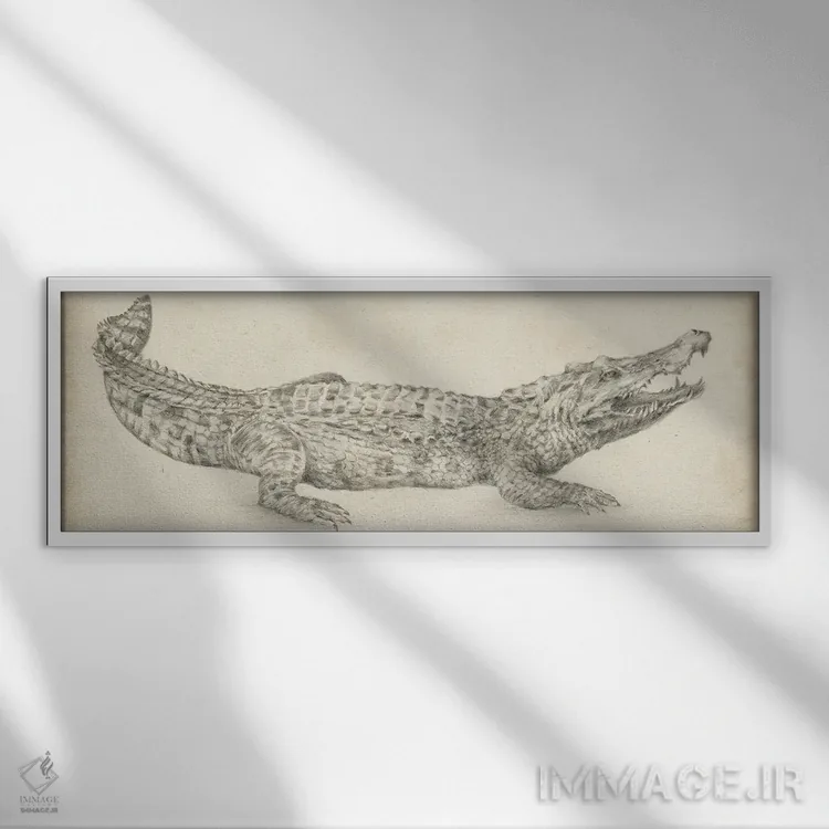 تابلو طرح کروکودیل اثر اتان هارپر - نمای قاب‌دار سفید