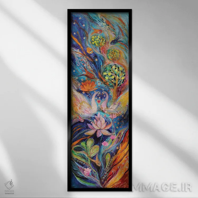 براساس پالت ترکیبی اثر، قاب تیک گرم (چوبی) پیشنهاد اول است و مشکی مات (فریم متوسط) مکمل. برای سفارشهای پروژهای با ابعاد و قابهای اختصاصی با ایماژ در تماس باشید.