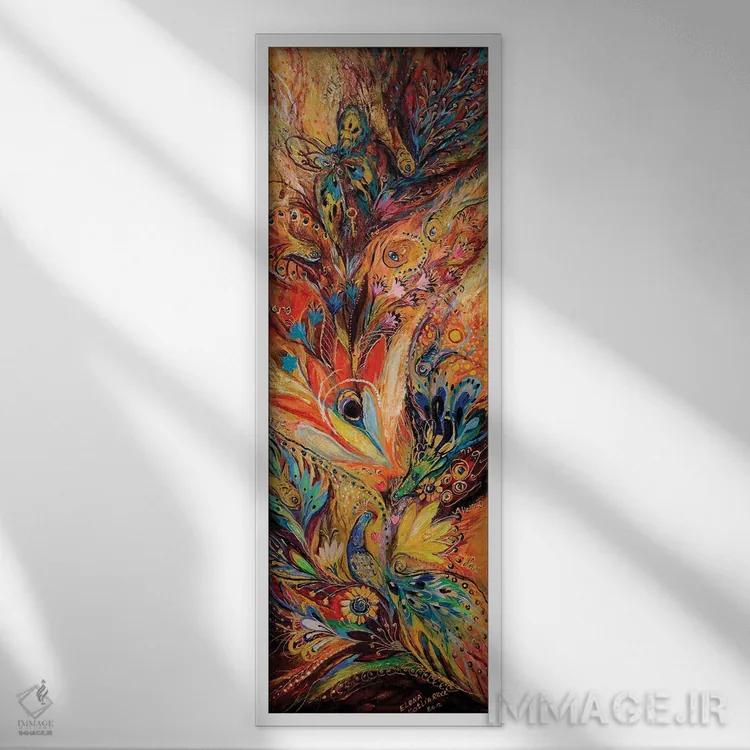 براساس پالت ترکیبی اثر، قاب تیک گرم (چوبی) پیشنهاد اول است و مشکی مات (فریم متوسط) مکمل. برای سفارشهای پروژهای با ابعاد و قابهای اختصاصی با ایماژ در تماس باشید.