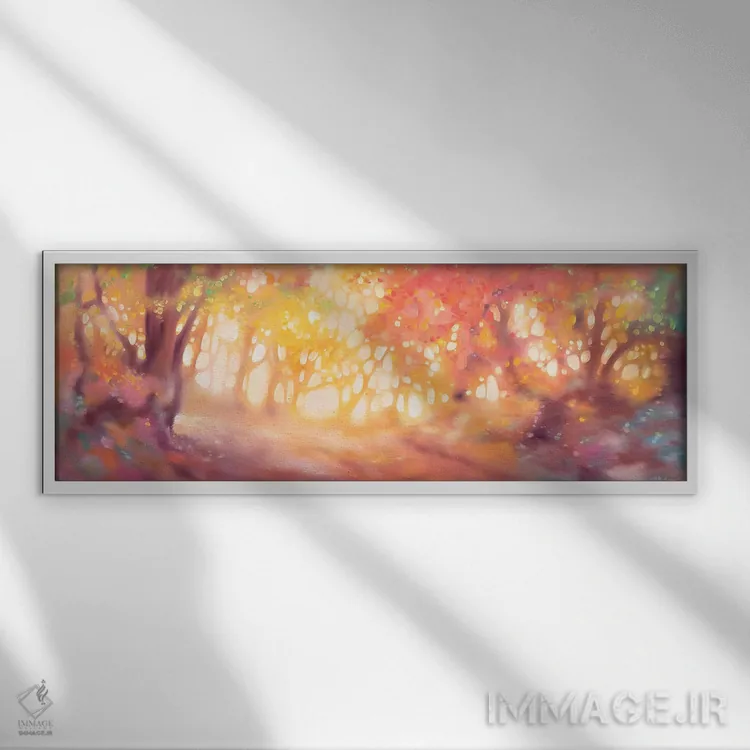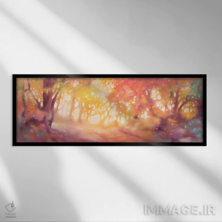 براساس پالت گرم اثر، قاب تیک گرم (چوبی) پیشنهاد اول است و مشکی مات (فریم متوسط) مکمل. برای سفارشهای پروژهای با ابعاد و قابهای اختصاصی با ایماژ در تماس باشید.