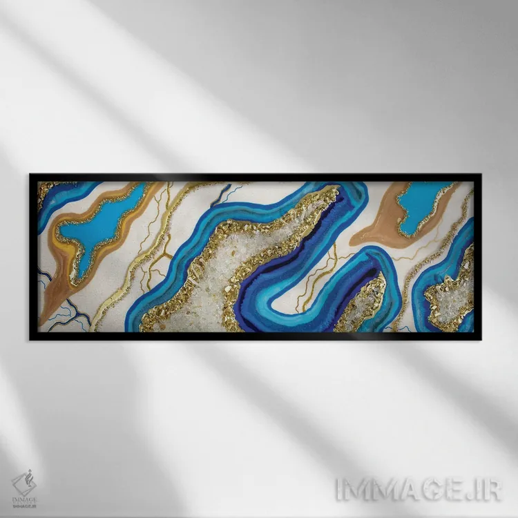 برای یک چیدمان تمیز، آبی را در قاب تصویرهای کناری در نظر بگیرید تا نگاه به سمت اثر هدایت شود. انتخاب قاب هم میتواند این اکسنت را تقویت کند.