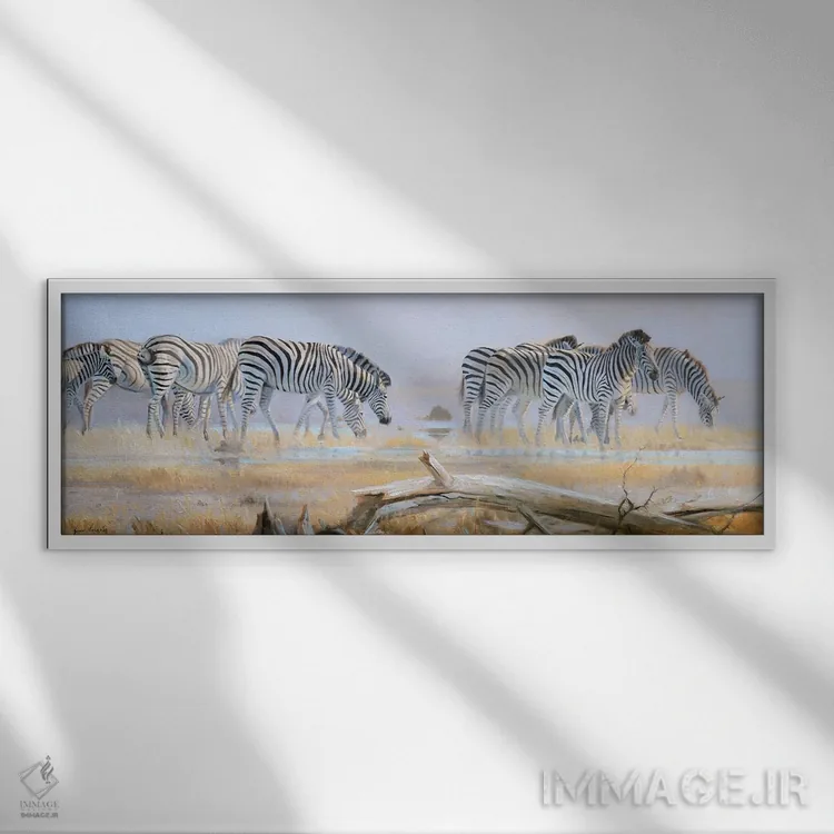 براساس پالت گرم اثر، قاب بلوط روشن (چوبی) پیشنهاد اول است و استخوانی ملایم مکمل. برای سفارشهای پروژهای با ابعاد و قابهای اختصاصی با ایماژ در تماس باشید.