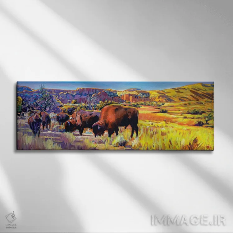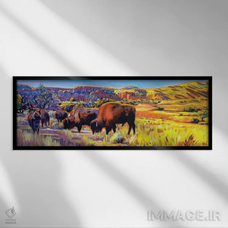 براساس پالت ترکیبی اثر، قاب تیک گرم (چوبی) پیشنهاد اول است و مشکی مات (فریم متوسط) مکمل. برای سفارشهای پروژهای با ابعاد و قابهای اختصاصی با ایماژ در تماس باشید.