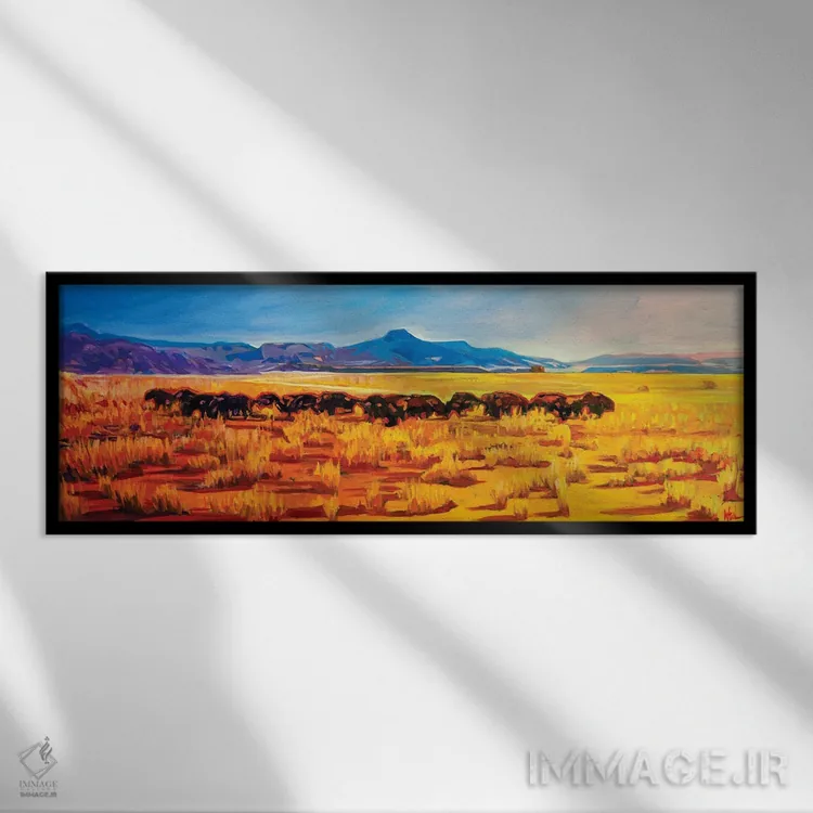 براساس پالت ترکیبی اثر، قاب تیک گرم (چوبی) پیشنهاد اول است و مشکی مات (فریم متوسط) مکمل. برای سفارشهای پروژهای با ابعاد و قابهای اختصاصی با ایماژ در تماس باشید.