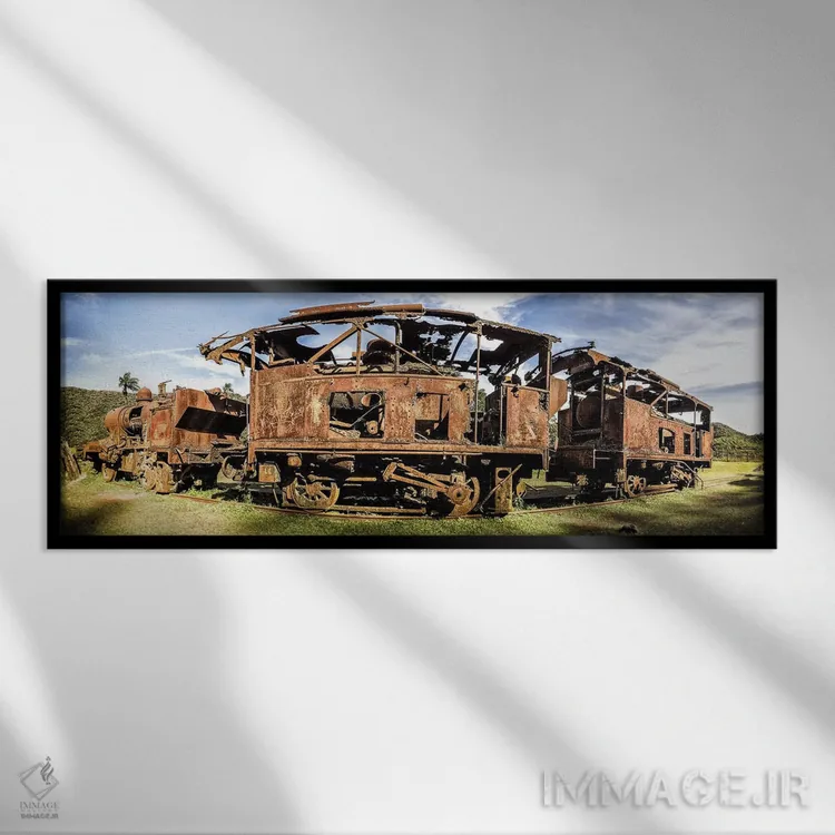 تابلو قطار زنگ‌زده اثر گلاوکو منهالی - نمای قاب‌دار مشکی