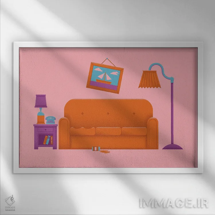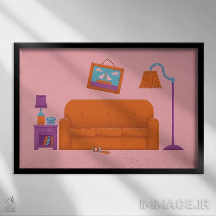 «شوخی مبل (ارجاع به سکانس مشهور سیمپسونها)» اثرِ «برگر بولت» با حسِ این اثر، یک انتخاب دلنشین برای نرمتر کردن فضای خانه و اضافهکردن لطافت به دیوارهاست.